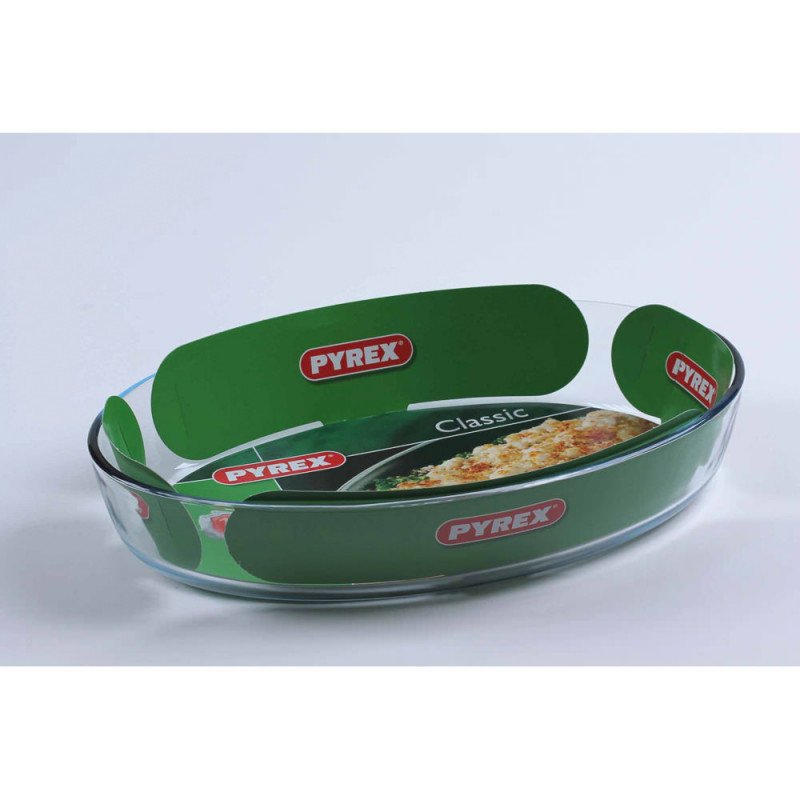 Plat ovale 35×24 cm PYREX Plat ovale . Verre borosilicate permettant une résistance au four jusqu’à 300°C. Résistant aux chocs thermiques. Prise en main facile. Convient pour une utilisation au micro-ondes et congélateur. Matériau hygiénique résistant aux rayures.